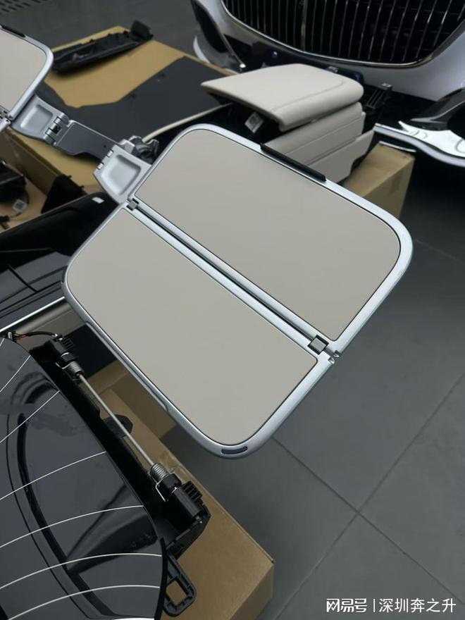 3. 功能与配置· 可折叠小桌板:这是改装后的重要功能点,采用铝合金骨架和防滑面料,方便放置笔记本、文件进行移动办公或商务洽谈。· 高级配置选装:改装可与多项高端升级结合,比如加装原厂车载冰箱、31扬声器的大柏林之声音响、支持多模式按摩的按摩座椅,以及更具仪式感的电动后门系统。